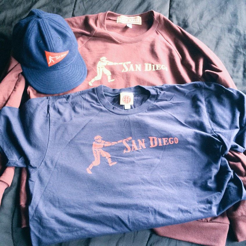 According to Ebbets Field Flannels, their Red Ball Collection was “Inspired by the mini-pennants given away with Red Ball gum in the mid-1930s. Historically-accurate artwork combines with American-made vintage apparel.” Due to my fascination with the PCL Padres and how much I love Ebbets and their products, I absolutely had to get my hands on this Padres cap, sweatshirt and t-shirt.